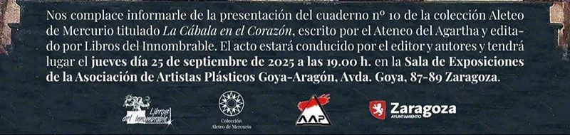 Jueves 25 a las 19.00h, presentación del cuaderno n-10 de la colección Aleteo del mercurio... "La Cábala en el corazón"